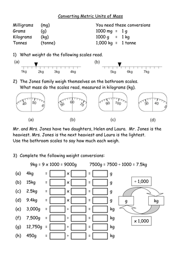 Converting Metric Units Of Mass Weight Worksheet Answers Included Teaching Resources