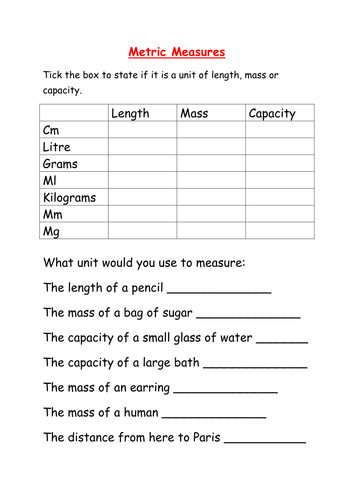 Ks3 Worksheet L5 Worksheet Converting Metric Mas Teaching Resources